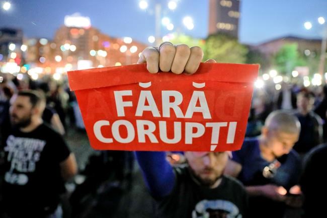 BUCHAREST, Romania – More than 1,000 people gathered outside Romania’s government offices Wednesday to protest a move by lawmakers to pardon acts of corruption.