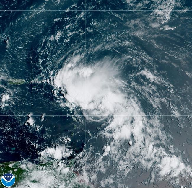 Laura, which set a record for the earliest 12th named storm of a season when it formed Friday morning, was moving through the northern Leeward Islands late Friday, about 195 miles (315 kilometres) southeast of San Juan, Puerto Rico. It had maximum sustained winds of 45 mph (75 kph) and was heading west at 18 mph (30 kph).