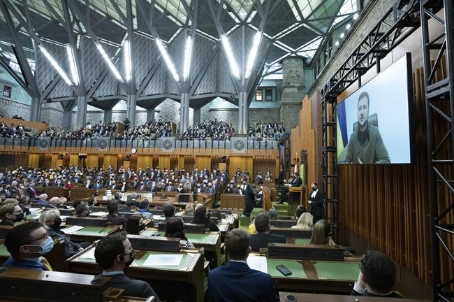 OTTAWA – Ukrainian President Volodymyr Zelenskyy delivered a passionate plea for a no-fly zone and more sanctions to starve out Russia’s finances in a speech to the Canadian Parliament Tuesday.