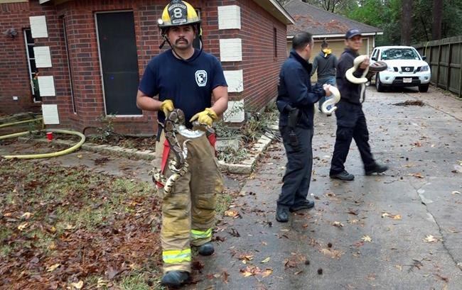 CONROE, Texas – Firefighters in Texas have rescued more than 100 snakes from a home that caught fire over the weekend.