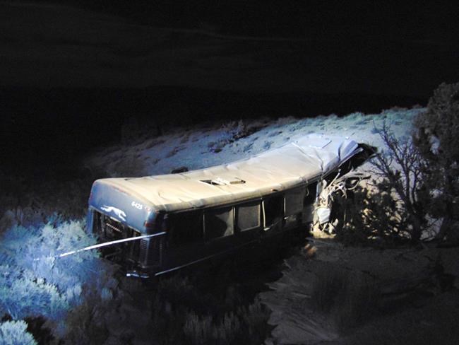 Utah Highway Patrol Lt. Steve Salas told the Desert News on Monday that it appears the bus drifted off the shoulder of Interstate 70 and did not appear to break before it crashed about 100 miles (160 kilometres) west of the Colorado border and 300 miles (483 kilometres) south of Salt Lake City.