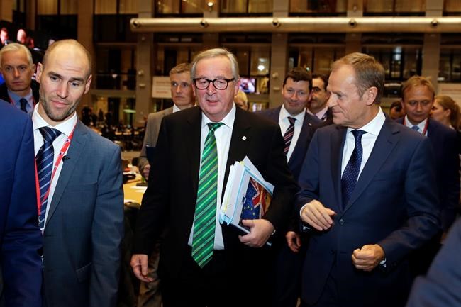 The leaders in their summit conclusions released early Friday also promise to work for a speedy new trade deal with Britain to avoid triggering a contentious Irish border guarantee.