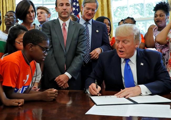 During an Oval Office appearance, where he was surrounded by students from local schools, Trump said more than half of U.S. high schools don’t teach computer programming and that nearly 40 per cent don’t offer physics.