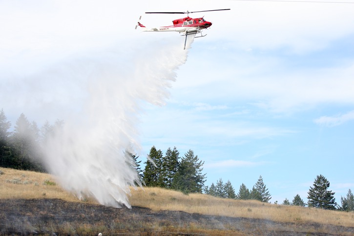A request for a water bomber was issued shortly after the blaze was spotted at about 9:30 a.m.