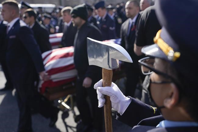 BALTIMORE (AP) — Thousands gathered in Baltimore on Wednesday to mourn the loss of three firefighters who died after they were trapped in a burning vacant rowhome when it partially collapsed last week.
