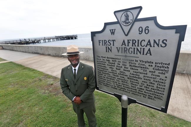 The event was held on Chesapeake Bay, where ships traded men and women from what’s now Angola for supplies from English colonists. The landing in August 1619 is considered a pivotal moment that presaged a system of race-based slavery.
