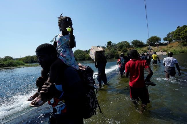Haitians crossed the Rio Grande freely and in a steady stream, going back and forth between the U.S. and Mexico through knee-deep water, with some parents carrying small children on their shoulders. Unable to buy supplies in the U.S., they returned briefly to Mexico for food and cardboard to settle, temporarily at least, under or near the bridge in Del Rio, a city of 35,000 that has been severely strained by migrant flows in recent months.