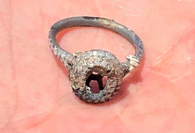 LOS ANGELES – A Southern California couple who lost their home in a wildfire made a new happy memory Sunday amid the ashes when they found what was left of the wife’s wedding and engagement rings.