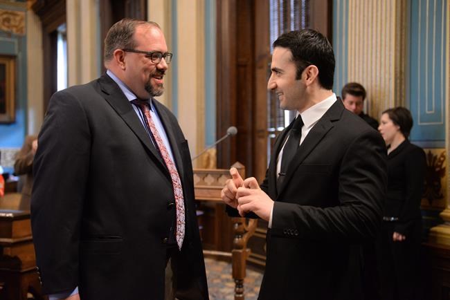 Hekmati told reporters his visit to the state Senate was “a very special day for me” and said he’s “just happy to be home and back in my home state of Michigan (with) people that have supported me and cared for me.”