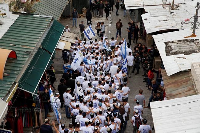 In an annual ritual, tens of thousands of Israelis marched through Jerusalem’s Old City to mark the day. Revelers sang, danced and waved Israeli flags.