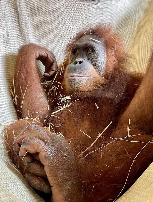 That includes lifting him up and down while he clings to a caretaker’s fingers and putting him facedown in hay, Wilson said. It also involves exercise by caretakers while the baby holds onto a furry vest. Sessions can include a caretaker bending, turning, walking fast, and climbing on ropes, swings and other orangutan equipment.