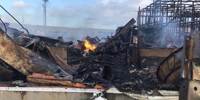 By daylight, all that was left was a twisted heap of charred metal and smoldering ash, and fire Chief Tony Daley said the building was a “total write-off.”