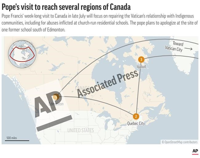 The pope’s similarly brief stopover, in contrast, is not intended to be celebratory. He’ll be finishing up a Canadian visit focused on in-person apologies for the abuse and disrespect inflicted on many thousands of Indigenous Canadians – including Inuit youths — who attended Catholic-run boarding schools from the late 1800s to the 1970s.