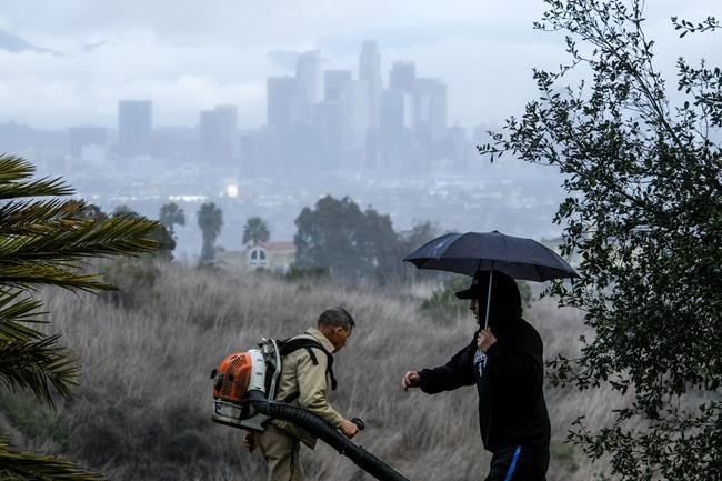 In the San Bernardino Mountains east of Los Angeles, crews were repairing a section of State Route 18 that washed down a hillside after heavy rain late Thursday. The closure of the major route into the Big Bear ski resort area could last for weeks, officials said.