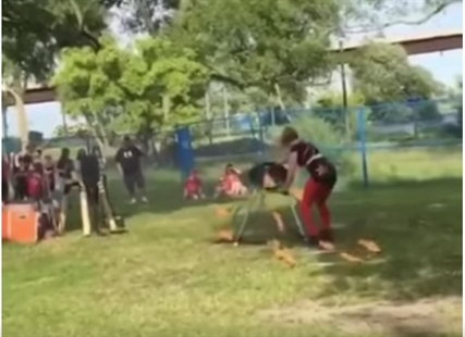 This starts out like the kind of video you'd expect. A street performer has a malfunction with some flaming hula-hoops and needs to put them out. Then this happens…