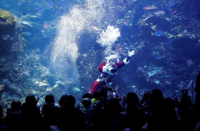 Scuba-diving Santa brings holiday cheer to fish, museumgoers