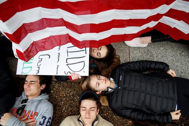 Dozens of teenage students spread their bodies on the pavement in front of the White House to demand presidential action on gun control and symbolize the 17 killed in a school shooting in Florida.