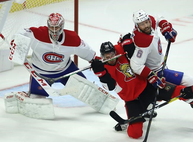 Notes: Josh Norris made his NHL debut Saturday night with the Senators. Montreal’s Karl Alzner played his first NHL game since Jan. 10, 2019, after being recalled from Laval of the AHL.