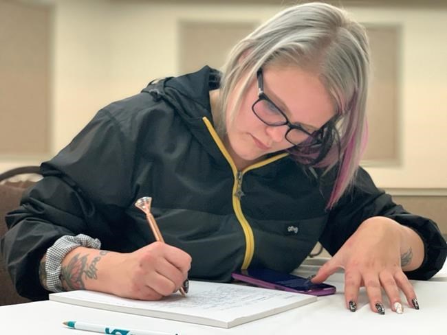 Destine Spiller wrote an apology at her final mediation circle Thursday in The Pas before reading it to elders and First Nations leaders. The group held hands, cried and prayed together.
