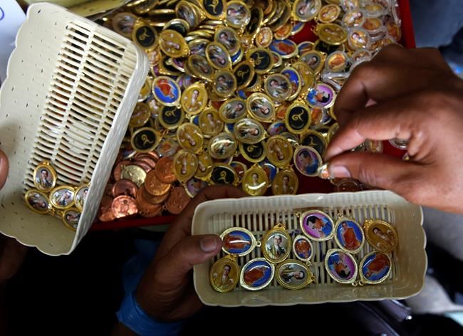 In this photo by Sakchai Lalit, people buy lockets with the image of late King Bhumibol Adulyadej in Bangkok. The king’s death after a reign of 70 years has triggered an intense outpouring of grief in Thailand, and people have been quick to purchase items or partake in activities such as alms-giving to honour his memory. Bhumibol died on Oct. 13 at age 88.