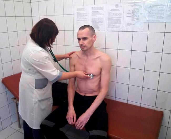 Foreign Ministry spokeswoman Mariana Betsa made the demand Saturday on Twitter. Russia’s penitentiary service said Friday that an unspecified “correction” in Oleg Sentsov’s treatment had been ordered; it published a photo of him being examined with a stethoscope.