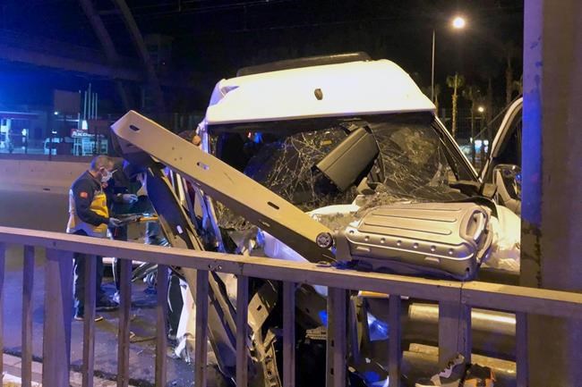 ISTANBUL (AP) — A minibus carrying foreign tourists crashed near the southern Turkish resort of Antalya on Saturday, killing a Swedish national and injuring five others, state broadcaster TRT News reported.