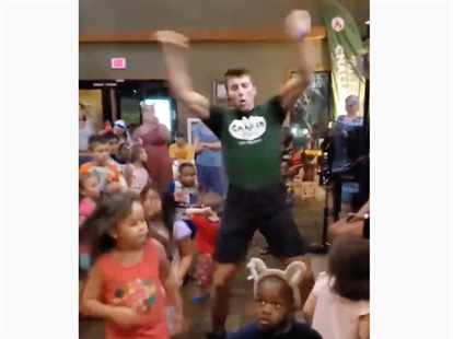 Brandon Fries flawlessly performs for a group of kids at the Great Wolf Lodge resort in Ohio to Queen Bey's Crazy in Love.