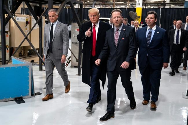 Earlier in the day, Trump addressed workers at a manufacturing plant in Michigan and couldn’t hide his anger over the impeachment trial. He complained that the Senate trial was overshadowing the U.S.-Mexico-Canada Agreement, and he recounted tax cuts and economic gains under his presidency.