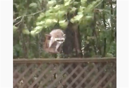 All this raccoon wanted was some of that delicious birdseed. He didn't expect Hurricane Dorian.