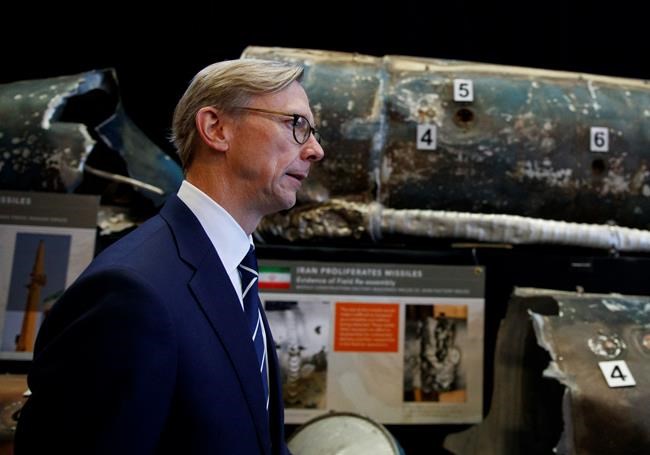 Hook said an Iranian-designed surface-to-air missile with markings in Farsi, the official language of Iran, had been intended for the Houthis in Yemen but was seized by Saudi Arabia. He said it showed the brazenness of Iran’s intentions.