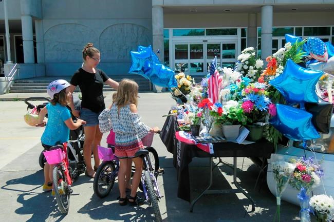 At the police station where McKeithen was killed, mourners continued to deposit tributes on his police SUV, overflowing onto tables the city set up.
