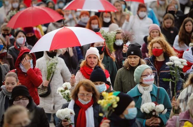 KYIV, Ukraine – Several hundred women marched across the capital of Belarus in heavy rain Saturday to demand the resignation of the country’s authoritarian president, continuing more than 2 1/2 months of protests against his challenged reelection to a sixth term.
