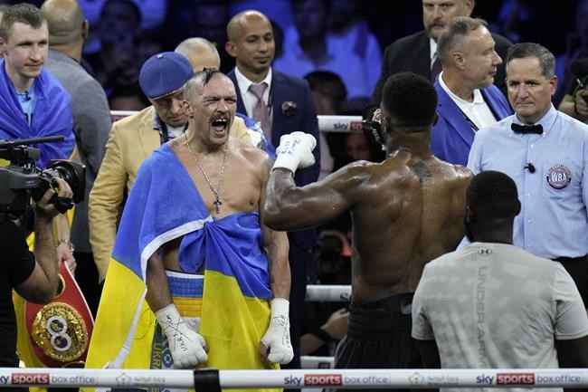 KING ABDULLAH SPORTS CITY, Saudi Arabia (AP) — Oleksandr Usyk kissed the blue-and-yellow flag of Ukraine and looked to the Saudi Arabian sky as he waited to discover if he had honored his war-torn country by retaining his world heavyweight titles.