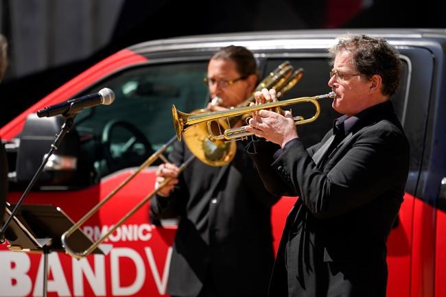 NEW YORK – On a sun-splashed portion of Lincoln Center, with 120 health care workers listening in neatly arranged rows of folding chairs, members of the New York Philharmonic made an initial return to concerts Wednesday, 13 months after the novel coronavirus pandemic decimated their season.