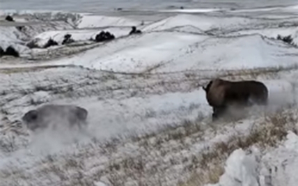 Despite the snow covering the ground, it's a beautiful view as four bison were released into Badlands National Park.
