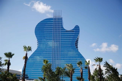 HOLLYWOOD, Fla. – It looks like a rock 'n' roll guitar that Led Zeppelin's Jimmy Page would have played. But this one is 450 feet (137 metres) tall and is a light-beam hotel that the Seminole Tribe wants to become South Florida's latest tourist destination.