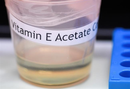 Vitamin E is safe as a vitamin pill or to use on the skin, but inhaling oily droplets can be harmful. It has recently been used as a thickener in vaping fluid, particularly in black market vape cartridges.