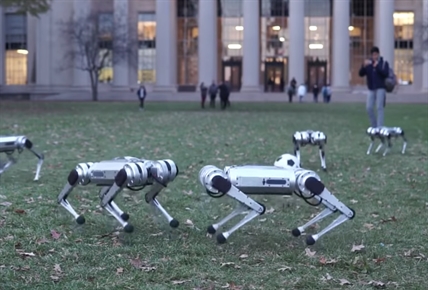 The biomimetics folks at MIT in Boston took their nine new mini cheetah robots out to play, amazing and terrifying passers-by.