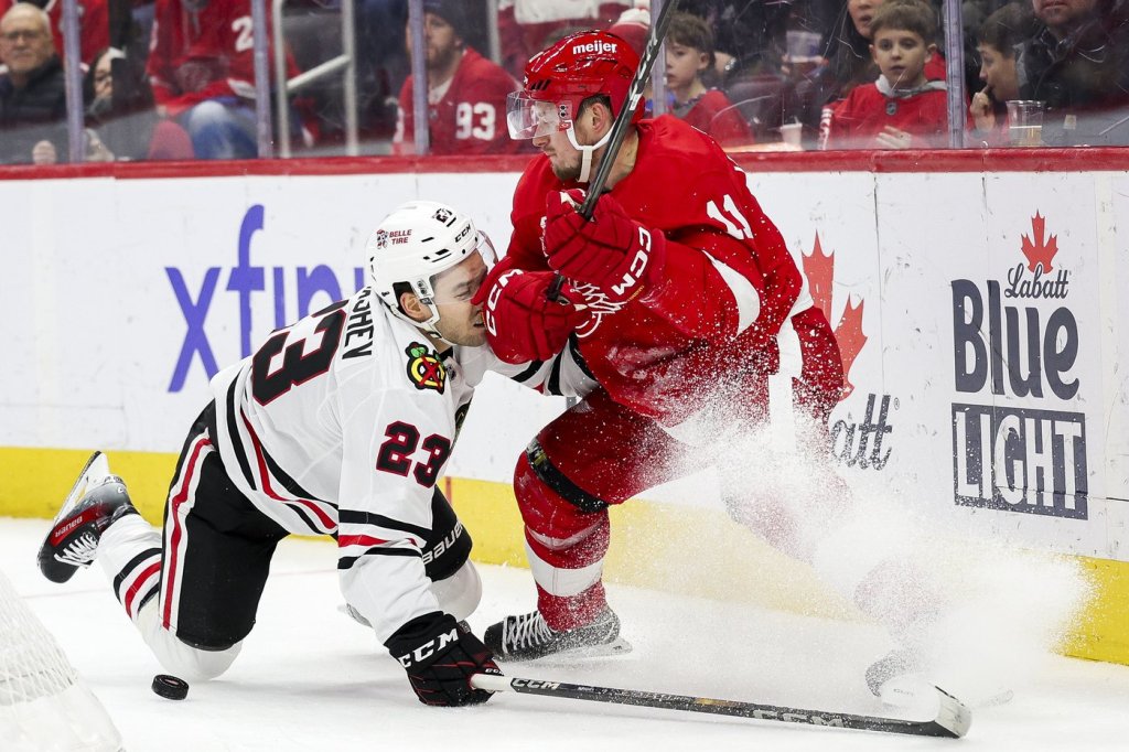 DETROIT (AP) — Alex DeBrincat and Lucas Raymond each had a goal and an assist and the Detroit Red Wings won their sixth straight game, beating the Chicago Blackhawks 5-3 on Friday night.