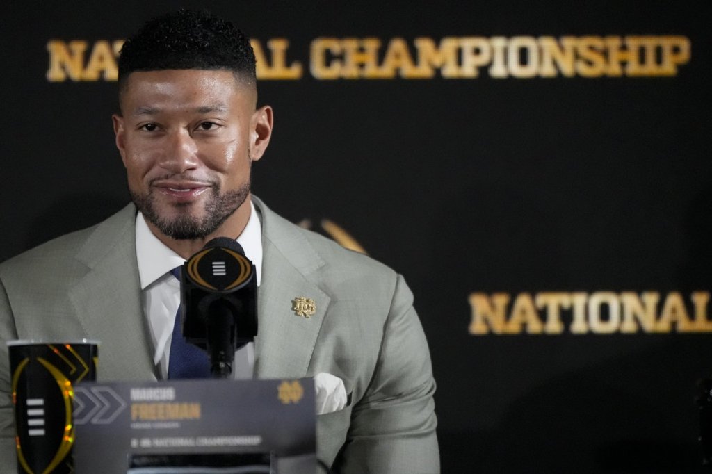 Notre Dame is the No. 7 seed in the first year of the 12-team playoff and Ohio State is No. 8. In the 10 years of the four-team playoff, only once did two bottom-half seeds reach the championship game. That was 2018, when No. 4 Alabama beat No. 3 Georgia 26-23, also in Atlanta. … Ohio State has won six straight meetings with the Irish and leads the series 6-2. … Ohio State is the first two-loss team to play in the championship game. … This is the third CFP championship game between teams from neighboring states. Alabama and Georgia met in 2017 and 2021. The Notre Dame (Indiana) and Ohio State campuses are 251 miles apart.