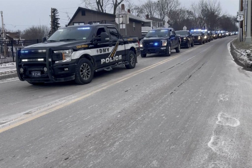 BURLINGTON, Vt. (AP) — Law enforcement officers from around Vermont escorted a fallen U.S. Border Patrol agent to a funeral home Thursday, three days after he was killed during a traffic stop near the Canadian border.