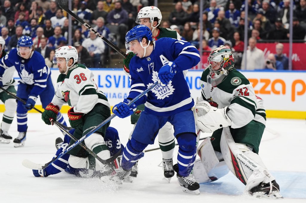 After the Wild pushed ahead on Khusnutdinov’s second of the campaign, Spurgeon made it 2-0 on a man advantage with his sixth when Matthews inadvertently tipped the defenceman’s point shot past Woll.