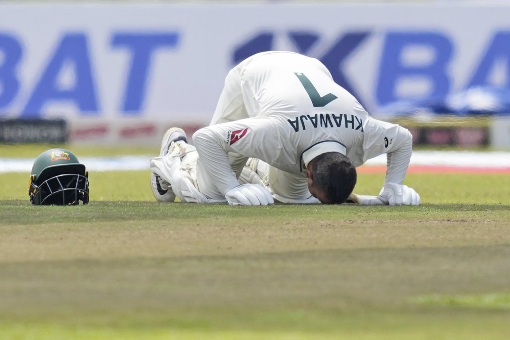 Khawaja’s eight-hour-plus knock of 232 off 352 balls was historic — the first Australian to score a double hundred in Sri Lanka. His is Australia’s highest individual test score against Sri Lanka. At 38, he’s second only to Don Bradman to score a double century for Australia. Khawaja edged behind to slow left-armer Prabath Jayasuriya.