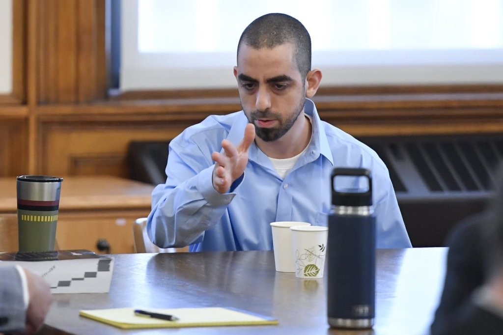 Matar, 27, of Fairview, New Jersey, is charged with attempted murder and assault. He has pleaded not guilty. He calmly said “Free Palestine” as he was led into the court Monday. During Schmidt’s opening statement, Matar looked on from the defense table, occasionally taking notes, and smiling and laughing while speaking with his attorneys.