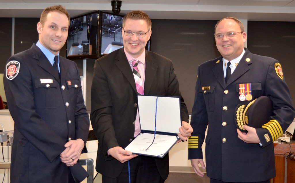 PENTICTON – A Penticton firefighter was commended for bravery during a presentation at the Jan. 14, 2015 meeting of Penticton city council.