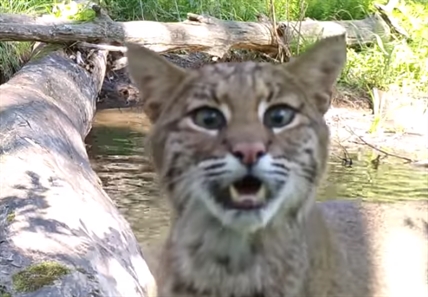Robert Bush of Pennsylvania set up a trail camera at the end of log bridge crossing a stream.