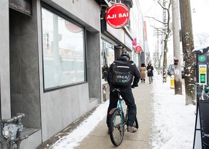 The job has the Toronto-based courier biking between 70 and 80 kilometres per day, incentivized by the per-delivery payment model. He typically works until 8 or 9 p.m., when both tips and order volumes are at their peak. After app fees and before tips, he makes around $6 per delivery, but with tips he can pull in upwards of $30 an hour.