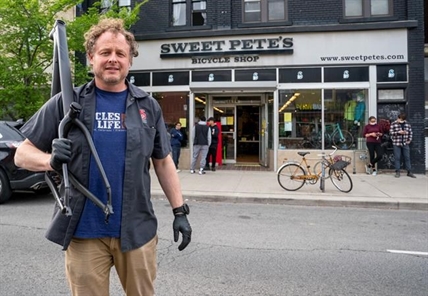 Cowie's London, Ont., shop pivoted by developing a mobile bike station that allows his staff to fix bikes in customers' own driveways, "so we're not sharing tools, we're not working in the same space, people aren't coming and going in and out of the shop… really trying to use this as an opportunity to do things better."