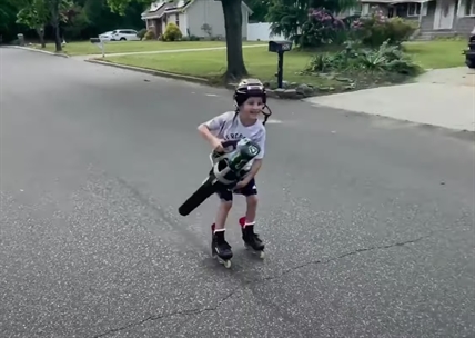 TRENDING NOW: Rollerblading kid adds leaf blower power