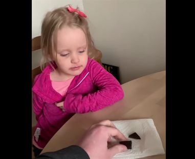 She saw the unsweetened dark chocolate and why wouldn't she think it would be delicious? Dad knew it was coming and luckily had the camera ready. Watch as her expression changes right at the moment expectation meets reality.